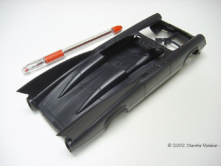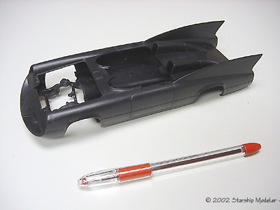 What You Get Like many of their kits, the Batmobile comes in a box that's too small for it - I'm never able to get all the parts back in and the lid closed after I open one! The kit consists of 75+ injection molded styrene parts, nicely molded in black, clear red, clear amber and clear. Four vinyl wheels and a sprue of chromed parts round out the bits. The sprues are packed in six separate baggies - a nice touch that lessens scratches and keeps parts from coming adrift before you get the box home. Rounding out the kit are a large sheet of bi-lingual instructions (French on one side, English on the other) and a small sheet of waterslide decals. This model is fully the equal of mainstream car kits. Unlike some of their other sci-fi vehicles, you get a full (but basic) engine, a separate hood you can pose open, detailed interior including the inner door sides, and "crew" figures (Batman and Boy Wonder, seated). They seem a bit small for the scale and their poses aren't that exciting, but separate heads and arms will make it much easier to scratch-build more dynamic forms. Chromed parts are provided for the wheel hubs and "Bat Logo" hubcaps. They attach to the sprues in small and unobtrusive places that will enable the builder to get them free without damaging the finish visible on the completed model. Detail throughout is decent - enough to satisfy most folk, but with plenty of room for those wanting to super-detail. Engraved lines, like the ones that set off the doors, are sharp and reasonably deep. Raised detail isn't as sharp as, say, a FineMolds kit, but is quite acceptable nonetheless. Molding quality is quite good, with no flash or sinkholes on my sample, and manageable ejector pin marks. The clear and tinted parts are actually clear and distortion free. Instructions are typical for Polar Lights - which means they're generally adequate. There are several exploded diagrams with accompanying text (including color call outs) - they look clear enough, but my experience with previous Polar Lights kits indicates that there will some frustrating omissions. Oh, well. The overall paint scheme is simple, and you can always pop the hood on your car to see where bits go, so I don't expect this to be much of a problem. Lastly, you get a small sheet of decals - markings for the instruments on the dash and for the Bat Logo on the hood. Is it accurate? How do you measure such a thing? Compared to the few panels I've seen, the proportions look good and all the major bits are there. Close enough to perfect for me. Assembly & Finish I've taped many of the major assemblies together, and fit appears pretty darn good. Don't be put off by the number of parts - this kit should go together fairly quickly, especially if you build sub-assemblies and paint as you go. One note about the finish - if you use black, you won't be able to see the hood decal. The instructions call for a dark blue, but I'd think a dark purple pearl might look better. Conclusions This kit looks great in the box. There's enough included to provide a nice challenge to less-experienced builders, with room for the super-detailers to go nuts. Fit and molding quality is leaps ahead of their older kits, so there won't be the trauma associated with Black Beauty (say) to have a fine looking replica on your shelves. Highly recommended! Many thanks to Polar Lights for providing the review sample. Manufacturers and retailers, interested in getting your wares reviewed and publicized on a site averaging 3000+ readers a day? Contact us! |