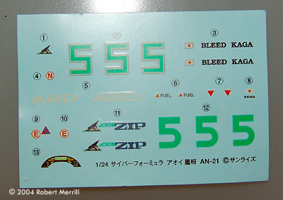 The more parts I dug out the more I wanted to kit bash this in to a space fighter. This kit has got some of the coolest looking parts, it's worth is just for them. After the initial wow, I decided to delve deeper into the parts. In addition to the white styrene parts there are 2 clear part, a vinyl figure (of the driver I'm guessing), and metal rods for the axles. Most of the parts are fairly flawless, minor mold lines on a few of the suspension struts, that sort of thing. The exception is a single piece for the jet exhaust with has a bit of a dimple in it. I grabbed the destruction sheet to see what it looked like. Now what interested me what the layout of the instructions. First was the title page, which did me little good as my japanese is nonexistent. Next was the paint & decal layout, normally found at the end of the instructions. The paint call outs are in Gunze-Sangyo Hobby Colors with a nice 4 view set of drawings. This is followed by two pages of concept art, with cut-aways and various views. If you want to super detail this kit you've got the needed materials here. Finally, we get to the build instructions. Directions look nice, but have some complex painting instructions. Conclusions All in all this looks to be a great kit and a chance to paint something with bright colors. Providing I can resist turning it into a space fighter. Read John Lester's preview of another Cyber Formula car Many thanks to Robb's wallet for providing the review samples. Manufacturers and retailers, interested in getting your wares reviewed and publicized on a site averaging 3500+ readers a day? Contact us! |