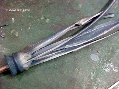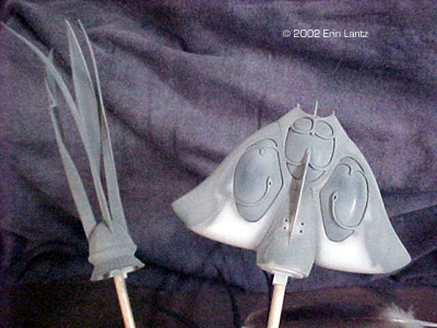 The tail fins were left masked after the application of the blue. Using a napkin dampened with mineral spirits, I removed the blue from the raised detail on the fins to leave the earlier applied grey that was sealed with acrylic clear. Once done, it was again sealed with acrylic clear. After allowing the clear to dry on the hull and tail for about a week, I next masked the lights in the nose, the "sensors", and the glowing bulbs in the hull sides. These areas were first painted white, then pink was added to the "sensors" areas only. The tail cone was painted in Tamiya Gold, then the ribs on it were painted in Testors Brass. The blue sections of the tail cone assembly were then drybrushed with Light Grey to bring out the details. At this time I also added some Light Gray streaks from the front to back, allowing the color to fade out towards the rear to simulate strikes that removed the blue coloring. Now that painting was done, the tail was added to the hull and the whole ship was coated with Humbrol Matte to flatten it all out. I almost left it glossy, it looked good, but I have heard some people commenting on glossy models as being unrealistic. Either way it looks good. Maybe I shoulda built two? Finishing Touches The base was painted in the same colors and fashion as the hull. The nameplate was painted in the same fashion as the tail fins, only reversing the colors to blue base with gray over top of that to produce blue letters in the napkin wiping step. The key is making sure the acrylic clear dries so that you don't remove the base color. If done right it looks as if all that detail was handpainted, nice and sharp edges. The last step is to remove the Micro Mask from the "glass". Using a steel surgical probe, I ran the tip along the gap between the hull and the masked area, dragging it into the rubberized masking to get it to bubble up. Once a bubble was formed I used an xacto to get an edge raised up to the point that it could be pulled by hand. I carefully pulled it all off of the windshield bubbles until clean. Overall Impressions Once finished this little kit is quite cool looking. I had wished it to be bigger, but the size is ok, especially with my dwindling shelf space! I still say it looks Minbari in origin, and may do a Minbari vessel using another kit if I can find one. If you see this kit in the bargain stores, pick it up. Its one of the nicer of the ERTL kits from Episode One, and I highly recommend it to the average modeler who has a few of their kits under his or her belt. |