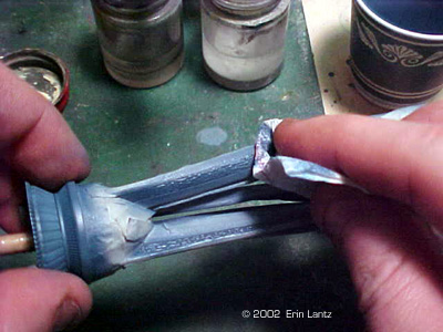 Assembly Assembly began with taking the parts and dry fitting all of them to check the fit of the parts. ERTL kits can be stubborn in this area, so doing this step really helped when gluing later, I knew where all the trouble spots were going to be. After the dry fit, I cleaned out the major snap fit alignment holes so that the parts would slide instead of locking, mainly to make the parts come together better. Flash clean up was annoying, this kit had little flecks sticking out all over the place! All edges were trued with an Xacto and mold lines removed. Next I coated the cockpit "glass" with several thick layers of MicroMask. This stuff is great for masking, but make sure you put it on thick. Previous experience has showed me that if you only put on one or two coats, you will never get it off without scratching the part underneath. I applied 5 layers, holding the part and rotating it slowly while drying with a hairdryer on low heat. Rotating the part allows the masking to dry evenly across the part, and the hairdryer dries the surface of the wet masking so that it stays where you put it. It takes some patience, but it really isn't hard to get it on thick and evenly, and that is vital to it working in the way I useed it on this kit. Next up to assemble was the cockpit tub. The walls of the tub are molded in one piece that just drops into slots in the floor. Fit is good, but it will have to be clamped tightly until dry or gaps will show in some areas. During assembly I decided that Qui Gon Jinn's seat was too far back, so it was cut out and moved forward. Some details on the back and side walls were missing, so I dug out the scrap box. What I assume to be air tanks were made by gluing bb's to the walls on each side. The hole in the floor left by QuiGon's seat was filled with a photoetched metal drain, and various helicopter parts were utilized to detail the back wall and the center console to roughly approximate the detail seen in the Cutaway book. Various other parts from the spares box were also test fitted in the side compartments at this time. Parts from the Anakin's Pod kit are in there as tubing, some resin curly shavings as seaweed, whiskers from the DSV kit, and a 1/35th Iraqi backpack, as well as the kit supplied cargo. Once all was dry, the whole cockpit was painted with Krylon White Primer and once dry was clear gloss coated. Decals for the displays were then added. The first disc in the decal design had to be cut so that it could be positioned separately from the others. It just didn't look right the way it was supposed to go down, the curve was too big for the decal to make it around. The figures as included in the kit looked WAY too stiff for me. I cut their arms off and repositioned them to more natural-looking poses, and in Qui Gon Jinn's case his legs were cut and repositioned so that he was leaning forward against the front seats. All the gaps were sealed up with CA and the figures were painted more or less to kit suggested colors. The flotsam was all painted at this time as well. Once dry it was all glued in permanently. The final step towards cockpit completion came in the addition of the cargo bay netting. My wife supplied the necessary bath netting for this. I cut two ovals slightly bigger than the bays from the netting, sprayed it all black, then carefully glued it to the outside edges of the cockpit bays with CA, stretching it as I went. Now that the cockpit was finished, hull work began. The canopy glass was glued with Ambroid to the upper hull with care not to rip or mess up the Micro Mask applied earlier. This part was clamped tightly to dry overnight to ensure that it was dried hard . Next the cockpit was glued hard into the lower hull and clamped tightly as well. This kit needs lots of clamps and clothespins, so get them ready if you build one! The little light scoops in the outside edges of the hull were also glued in and left to dry before proceeding. This eased the hull assembly; they kept popping out during dry fit! |