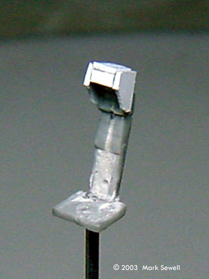 I began to collect the best possible reference photos for this project. I managed to collect a good set from various web sources in addition to a small but good photo from the Topps ESB 3rd series of trading cards. This turned out to quite valuable because it shows a framework located on the back of the seat that otherwise you wouldn't know is there. Seemingly absurd but, for the detail maniac it was a must. I felt that the seats looked a lot like the seats found in modern day aircraft. This started the gears turning. I found the base of my seats from a Hasegawa 1/72 F-14 Tomcat kit that I had lying around. I know that the scale of this kit has been debated but I decided that 1/72 scale is the scale I would use. The kits seats are assembled with three parts, two for the frame and one for the seat cushions. This would work to my advantage because only slight modifications would have to be made to the frame pieces in order to arrive at the shape I was looking for. I assembled the seat frames first. The seat cushions I thought I would discard in favor of making my own but as it turned out I could use the larger section of the tiny piece and I proceeded to cut away to rest of the cushions with a sharp knife to arrive at the piece I needed. The ejector seat frames would need a little more alteration before I could begin my work at the conversion. The frame had bits of detail on the outermost edges that needed to be removed. I did so with a sharp knife and a set of jeweler's files. At this point I seemed to me almost a futile effort because I could have scratch built the frame but in my opinion the less I have to fabricate the better off my sanity would be. With the frame cleaned up I finally could start my modifications. I started by addressing the headrest. Initially, I mistakenly made a cut to the back of the headrest that I later would have to correct. The reference pictures show a curvature to the headrest and to model this I made an initial cut with my knife, then shaped it crudely with the jeweler's file using a half round profile. The pictures I had showed the headrest flared out from the "stalk" of the frame assembly so I needed to build up the headrest with sheet plastic. Choosing a gauge of plastic that would give me the right width I cut four sections of plastic and glued them to the headrest section of the seat frame using medium cure Zap-a-gap. At this time I chose 1/16" aluminum tubing to act as the pedestals of the seats so that I could hold onto the seats while I worked on them. This later would be changed to .032 brass rod, which seemed closer to scale. Next, I began to shape the plastic with a combination of course, medium, and fine flex-pad sanding sticks. Because of the "filling" quality of the Zap-a-gap I was able to sand the form very thin where there is curvature toward the top of the headrest. With the headrest done the next step was to create the cushions for the seat. Using the large section of cushion that was included with the original ejector seats and cut earlier I glued it to the frame, then filled in the scribed lines on the cushion with Squadron white putty. I continued by adding a lower cushion cut from the same stock of sheet plastic that I used for the headrest form. The lower cushion is a small section at the base of the frame and after gluing the sheet to the frame I used jewelers files to create the final shape. Finally I added a panel to the upper portion of the frame that lies between the upper cushion and the headrest. Now it was time to test the limits of my patience and detail the two seats. I started with the framework on the back portion of the seats. This took fourteen pieces of .020" square styrene rod from Plastruct. I glued the sides of the frame first and inlaid the individual pieces separately. I used the fastest setting Pacer Zap for this process. Invariably I would end up with "pools" of glue that I quickly soaked up with a dry paper towel to maintain the relief that I wanted. |