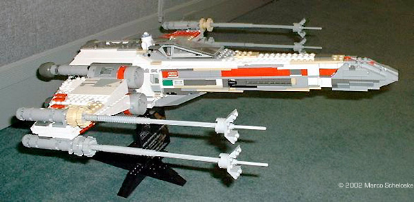 The model comes out really huge when completely built, approximately 50 cm (19 5/8") long. It is built in subassemblies which must be put together at the end. The problem is that the bricks of the subassemblies are mixed in the bags, so you must open them all. I suggest you find a flat area in your house or apartment without much traffic, spread all the 1304 pieces there CAREFULLY (there are a lot very small ones which are always trying to disappear...) and search, search, search. It could help to sort them by color. Assembly is straight forward except one step, but this is definitely not made for children (LEGO itself recommended it from 14 years up). I needed two full days building it, and I'm 33 years old and have been building models for more than 25 years now! The step that is a little problem is the subassembly of the main fuselage which contains the gearbox for the movable wings. If you follow the instruction to move the mounting-points in the correct position so that the wings would face correctly when attached they WILL be wrong! I recommend to build the wings first and then test-fit them to the gear before you close the main fuselage because it is difficult to re-open it once it is finished. The colors of the bricks are well chosen, there are hull-platings given in two different tones, but at the end the model is a bit clean (and who wants to weather a LEGO-kit?).Take it as an INCOM brand-new one, ready for being shiped to the next starfighter-store, and it's ok. The canopy and the wings can be opened and closed. Details are very good for a LEGO-model (some cockpit-parts has pre-printed details), the laser-guns has the correct different appearance (two "flat"-ones, two with the coils), but it is a little bit out of proportion - especially the engines are too small in diameter. The wings are looking good while in combat-position, but they are too thick when closed. But the overall appearance is very good, and it is a lot of fun building it. Oh, and when it should fall down you can just collect the pieces and put them together again, and no damage will be visible. Do that with a styrene or resin one! Is it worth the price (recommended by LEGO: 209,- Euro)? Hm, regarding to the size and the number of pieces it fits into the usual LEGO-price-range, but for myself that would be much to much. Although you have to pay less usually, the average range (120,- to 150,- Euro) is still very high in my eyes. See, it is and remains a LEGO-toy-like model and not an ultimate resin-kit. Sure, it is a good one to take a little rest from the "advanced modeler syndrom", and it is an impressive display item, but I think only a real X-Wing-collector should get it for such an amount of money. I got mine for only 60,- Euro at a toy liquidation, and for that price I didn`t have to think twice. So my recommendation: When you`re searching for the best LEGO X-wing available and you MUST have one, go get it. When you`re searching a toy for your child, get one of the smaller LEGO-X-wings available (these are better for the "wooosh"-thing too, if you know what I mean?). When you can get your hands on a cheap one, get it - if not for yourself, it will make a good and unsual gift for a model-building friend! Many thanks to Marco's wife Dagmar for providing the review sample. Manufacturers and retailers, interested in getting your wares reviewed and publicized on a site averaging 2000+ readers a day? Contact us! |