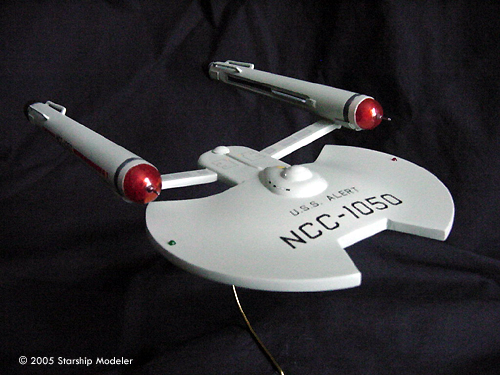 Starship Modeler is proud to announce the Alert-class Perimeter Action Ship conversion kit for the Polar Lights® Enterprise. The kit, comprised of 3 resin parts, (including optional sensor dish support) includes ALPS-printed waterslide decals with markings for three ships (Alert (NCC-1050), Phalarope (NCC-1052 )and Surprise (NCC-1055)). Also included are self-adhesive templates for optional supllemental ablative armor panels. Parts needed from the Polar Lights kit are a clear bridge dome, warp nacelles, sensor dish if desired and some decals (if desired).