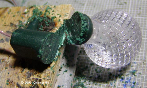 the base of the clear plastic ‘bulb’ and a quarter inch (6-7mm) down into the