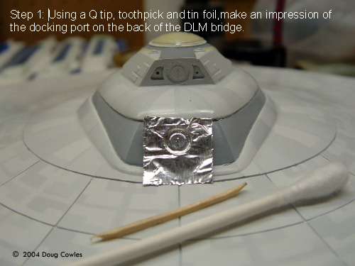 Step 1: Using a Q-tip (cotton bud), toothpick and aluminum foil, make an impression of the docking port on the back of the DLM bridge.