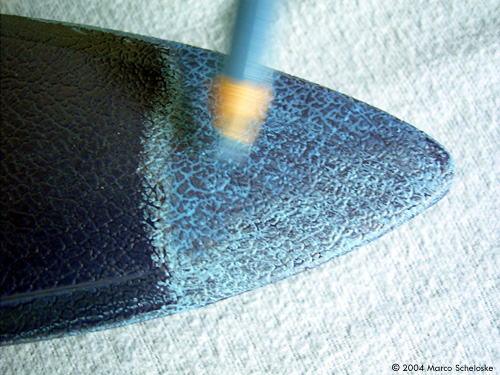 Step 6: Once you have "painted" the whole surface, cover it with a non-water-based clear coat (dull, semigloss or gloss, just choose by yourself). DON`T use a water-based coat because it could affect the pastel-filled detail! Here's some close-ups of how this worked on my Seaquest: Image: FrontImage: Middle |