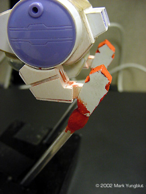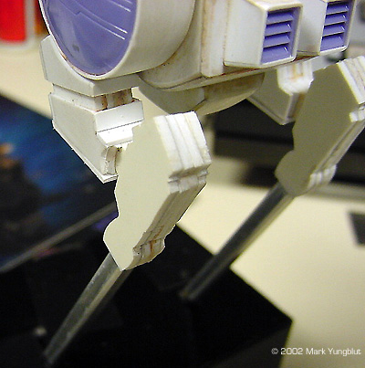 ^ This view shows the four layers of styrene glued together. Note that the lower section of the upper leg was created the same way and the knee joint.
