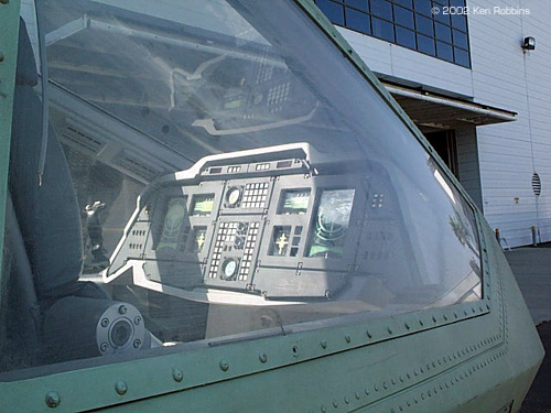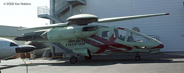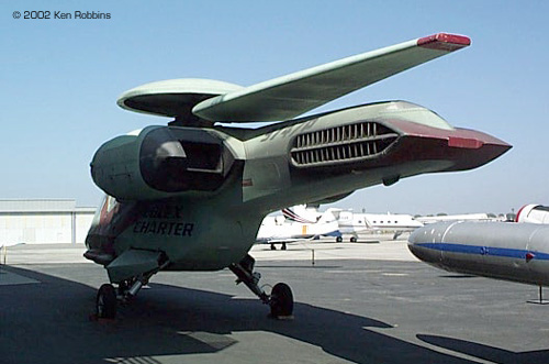 6th Element. This was another big budget Ah-nold project that boasted state-of-the-art effects and a couple of big name actors, but was not a favorite of critics or movie goers. It did have cool hardware, though, including the 7,000 pound Whispercraft, a blend of high-tech materials covered with a poly-composted fiberglass finish and fitted with a computerized dashboard and working rotoblades. Designed by Ron Cobb, ("Alien," "Babylon 5") the Whispercraft was modeled after a military prototype being worked on today. It was designed to function as both a rotor-driven craft and a canard fixed-wing craft (although the mock-up could spin its rotors it couldn't actually fly). Photos were taken at the Santa Monica Museum of Flying and are courtesy of Ken Robbins. Image 11: Closer look at that engine exhaustImage 12: Cabin door, starboard Image 13: Cockpit "dashboard" Image 14: Front view Image 15: Nose gear Image 16: Cockpit framing Image 17: Engine intake (port) and underside of rotor hub Image 18: Under the port side engine pod Image 19: Cabin door, port side Image 20: Access panel |