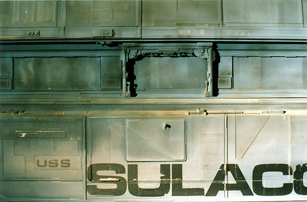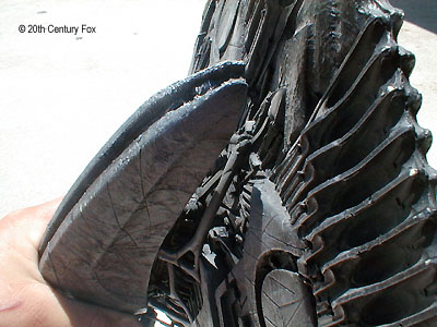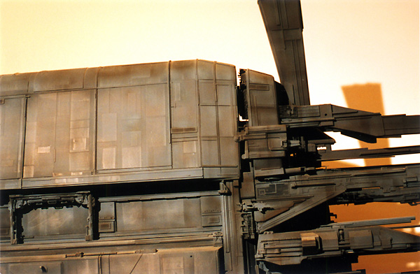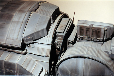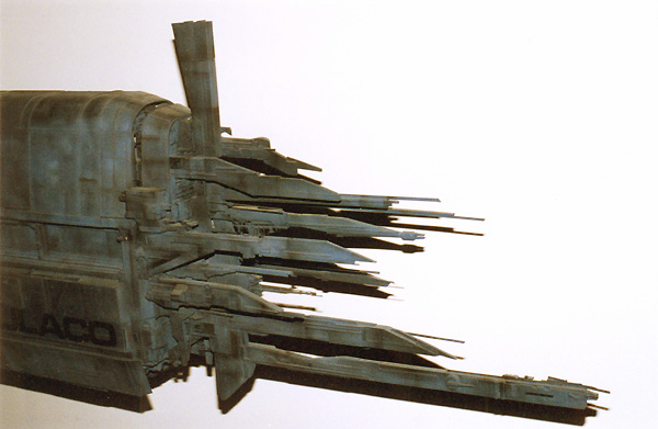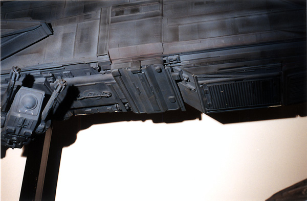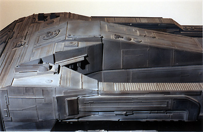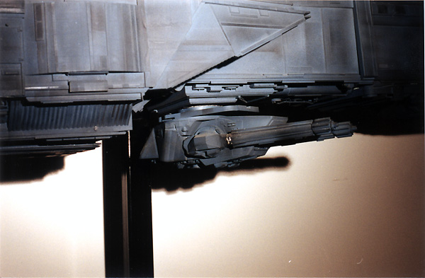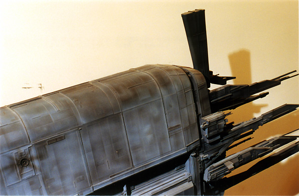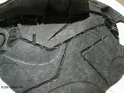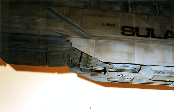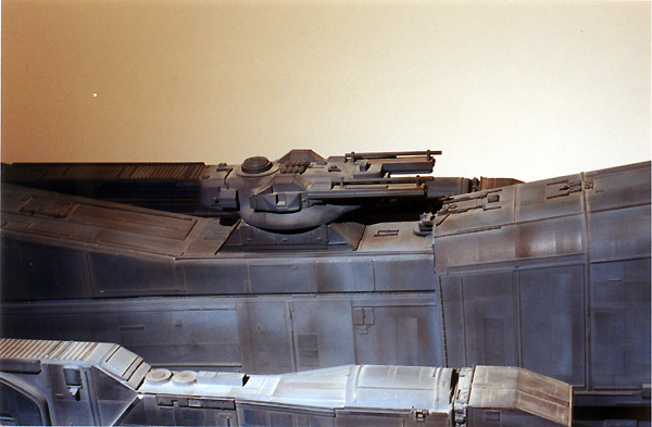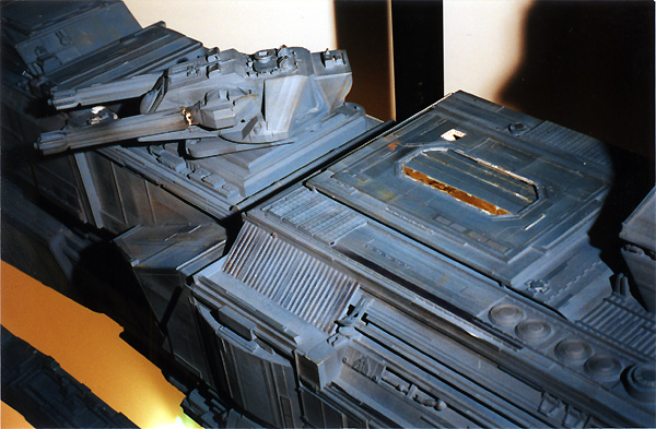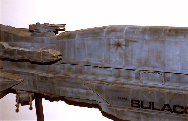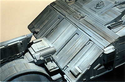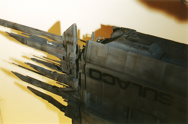 Alien(s) Series Inspired by IT! THE TERROR FROM SPACE (one of the best sci-fi horror flicks of the fifties), ALIEN became a genre classic in the years since its 1979 release. The series also . The movie not only made Ridley Scott and Sigourney Weaver famous (and gave James Cameron his start), it set entirely new parameters for sci-fi films, and began a series of films that formed a tight trilogy covering a span of over two decades. Unlike ANY sci-fi film before it, "ALIEN" was dark, gloomy, claustrophobic and most importantly, dirty and unglamourous. The hardware and vehicles have a realism derived from functional, ugly designs The USS Sulaco is a multi-role space vessel that carries Ripley and comrades back to the doomed LV-426 colony in Aliens, the second movie. Syd Mead, Ron Cobb, and James Cameron were the major contributors to the vehicle designs in the film. The Sulaco was patterned after a modern-day submarine for its basic shape, and lent that shape to the pulse rifle. The filming miniature now belongs to Bob Burns (photos are from the collection of Mark Dickson). Image 25: Section near circular structure, rear of ship.Image 26: Same section, from underneath. Image 27: Center/rear of ship, upper surface. Image 28: Circular structure, underneath, starboard side. Image 29: Same area, closer look. Image 30: Same area, from above/right. Image 31: Closer look at the detailing. Image 32: Same area, looking at small fin on top of circular structure. Image 33: Details in the crevices around that circular structure. Image 34: More details, looking aft. Image 35: Just forward of the circular structure, topside. Image 36: Overall view of that area. Image 37: Upper fin, from above. Image 38: Detailing between the "petals" covering drive section. Image 39: More detailing, top side. Image 40: Panelling, drive section. Image 41: More detailing, center of drive section. Image 42: Engine exhausts. Image 43: Closer look. Note ladder. Image 44: Exhausts, from the side. Image 45: Side view of entire ship. |