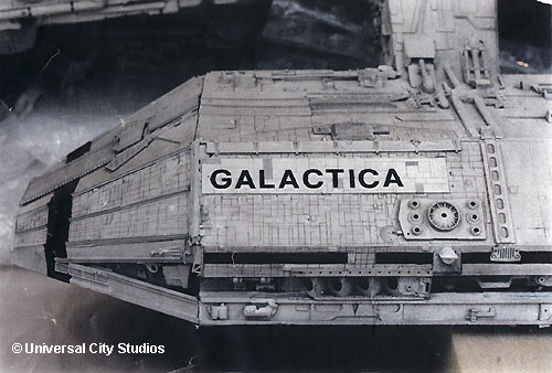 BattleStar Galactica Glen A. Larson's 1978 epic science fiction adventure tried to capitalize on the sci-fi craze started by Star Wars the year before. It failed, alas, but not before two years on ABC every Saturday night. In the story, Kobol was the mother planet which sent out space proves and found 13 planets capable of supporting life. It colonized 12 of those planets, but when these civilizations are destroyed by the Cylons in a thousand-year war, the survivors set out in any spacecraft that will fly in a vast migration for the 13th planet: Earth. The remnants of humnanity are harassed every step of the way by the Cylons, a computer/robot civilization whose only mission is to exterminate life. Photos from the collection of Mark Dickson. |