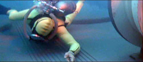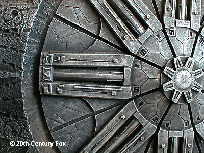 Following the success of the 1994 film "Stargate," Stargate SG-1 debuted in 1997. Remarkably successfull for a sci-fi show, it has run ten seasons and spun off at least one other series (Stargate Atlantis in 2004; a third series is in development as of this writing). The premise is that the U.S. government created Stargate Command to explore the galaxy and acquire advanced technologies to defend Earth, using an ancient alien artifact called the Stargate. This device connects to other, similiar "gates" via instaneous "subspace wormholes". From relatively simple beginnings, the show has grown to encompass dozens of alien races, huge space armadas ... and all the drama and excitement you could ask from a good space opera. Images courtesy of "Dave", who adds "I don't have any pictures handy, but we did a lot of different angles of the 'gate opening'. This was done by simply blowing air into water (exactly what it looks like!), using a massive glass tank as a containment vessel, so that we could cover a number of angles for future use." |