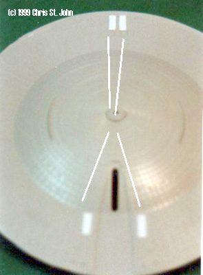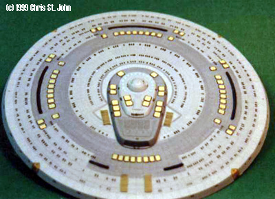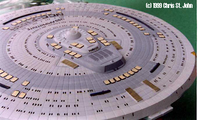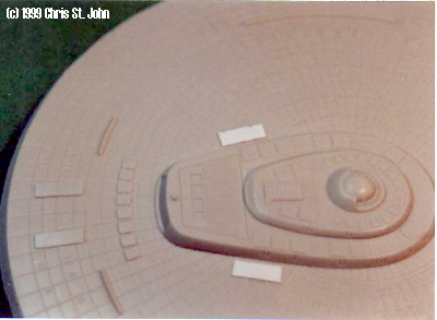 ^ Top and bottom of saucer, showing transporter emitters and lifeboat hatches picked out. |