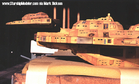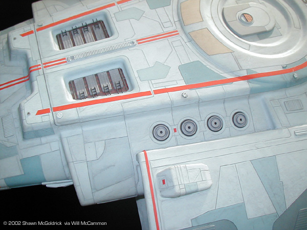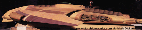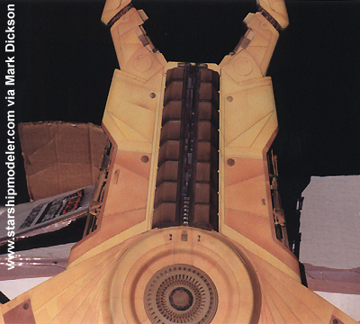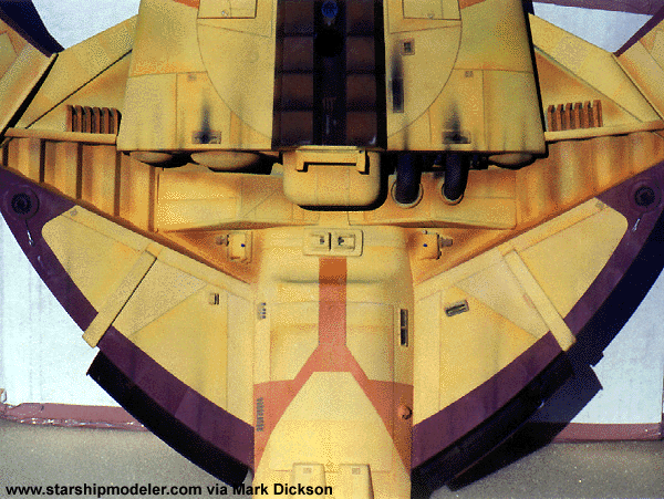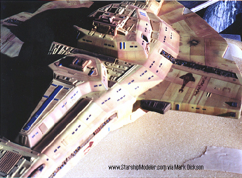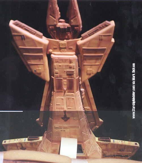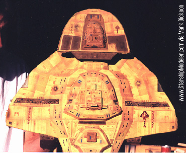 Star Trek® characters, names, and all related indicia are copyright and trademarks of Paramount Pictures. . All Rights Reserved. This page is not an authorized publication of Paramount and does not intend to infringe on any of their copyrights, trademarks, or publication rights. ANY COPYRIGHTED MATERIAL APPEARING ON THIS SITE COMPLIES WITH FAIR OR ACCEPTABLE USE PRINCIPLES ESTABLISHED IN U.S. AND INTERNATIONAL COPYRIGHT LAW FOR THE PURPOSES OF REVIEW, STUDY, CRITICISM, OR NEWS REPORTING.This page is best viewed by a system carrying the 'Haettenschweiler' font. Please direct comments, questions, corrections, and picked nits to the Starship Modeler staff. Last updated 29 May 2002. This page copyright 1998-2002, Starship Modeler. |