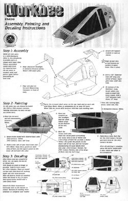 Regardless of what shortcomings folks may attribute to Star Trek: The Motion Picture, it probably had the most solid science and engineering foundation ever seen in the Star Trek franchise. The hardware not only looked good, but it was designed to work! For the first time we had airlocks and RCS thrusters in Star Trek. ![]() The Work Bee is a product of that practical approach to Star Trek. As designed for the movie, the Work Bee could be used to shuttle standardized cargo pods or could be outfitted with a pair of waldoes for missions requiring manipulating and toting objects around. They were Star Trek's equivalent of 2001's EVA Pods. After Star Trek I, the Work Bee was rarely seen until recently, when the design was dragged into the 24th century and featured in the revised Deep Space Nine opening credits. Thus the Work Bee was rescued from obscurity, which may have been part of Federation Models' incentive to make a kit of this subject. This model allows you to make either a 23rd century (early movie era) or 24th century (Next Generation/Deep Space Nine) Bee, though the kit only includes the basic Bee - no waldoes or cargo pod clasps (though both could be great scratchbuild projects). Attracting a Bee I chose to buy my Bee direct from Federation Models. It was $45 (1999 price). The service was quite good. Federation Models "casts to order", meaning they don't just have a big warehouse of stuff waiting to be shipped. Given that, I was impressed with the two and a half week turnaround. The kit came well packed in a sturdy corrugated box, with color xeroxed "box art". All the parts were well packed, with the small parts and decal sheet in their own separate baggies. Entomological Inspection The kit is pretty big - about 7" long when completed. Using the numbers in the Deep Space Nine Technical Manual, I estimate the kit to be about 1/23rd scale. The kit has nine structural parts, eight of which are resin. Two types of resin were used: a rust red types for the hull halves and base, and a light tan for the smaller components. The main hull is in two (big) pieces, with alignment pins on the inside to aid in getting an accurate fit between the halves. All parts exhibited some airbubbles and pits, but I don't want to give the impression that the kit's quality was poor. The pits were small and fairly easy to fix. For the most part, the casting was very clean and crisp. Still, the kit's large size and simple construction makes it a "painter's kit", so you'll want to spend the time to make sure all irregularities are cleaned up. One of the coolest elements of the kit are the decals! They include markings for the 23rd and 24th century eras and include a choice of "assignments", such as DS9, Utopia Planetia, Enterprise, Reliant, or just the general Starfleet Corps of Engineers. While a marking guide is included, we have never seen much in the way of markings examples in the show. As a result, it's fair to say the modeler has a good amount of latitude in decal choice and placement. It's a fun sheet to play around with! The only downside to the decals is that they were apparently done on an ALPS printer. This means that some colored areas exhibit a dot-screen effect, like the lower quality Monogram sheets.. The kit comes with a single, well illustrated, professionally done sheet of instructions, combining construction, painting, and markings notes. It also includes some useful hints and tips for building an finishing. However the painting guide may have some innacuracies (see "Coloring the Worker", below). Building the Bee Since the kit is so large and has so many smooth surfaces, I wanted to make sure I had ever pit, bubble, and seam adequately finished. For this reason, the bulk of my construction time went into clean-up and seam finishing. For both I used Gap Filling CA and Bondo Spotting and Glazing Putty, thinning it with acetone in some areas to help it flow into seams or small pits. I spent more time on this phase than I would have liked, but (a) I was being a perfectionist, and (b) I'm really inept at filling pin holes... The kit's construction is very simple: attach upper hull to lower hull, then stick on five parts. The hulls' alignment pins work quite well, however there was some very slight parts warpage on my kit, which resulted in a significant amount of puttying to hide a 1/32" gap where the two parts met. This problem could probably be avoided by making sure you dry fit the parts, closely examine the fit, and sand the mating surfaces where appropriate. In other words, do what I say, not what I do... I only caught two areas where the accuracy falls short. The most notable is that the lower of the two thrusters for both rear RCS quadrants is missing. The other concerns the panels set behind cockpit, on both sides. The port (life support access) and starboard (main power access) should be different, but the kit depicts them both with the life support access details. Both of these are fixable with some effort, but I figured that to do so would be confessing to the world that I spend too much time with my Star Trek blueprints (that and I figured the kit would look just fine, as molded). Coloring the Worker The next step is figuring out what paint and decal scheme to use on your Bee. This little craft has seen service from the original Motion Picture days, all the way up to Deep Space Nine. The instructions give details on how to paint the Bees for each of the given eras. However, these instructions seem to be flawed, given all the reference I've been able to uncover. |