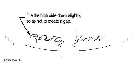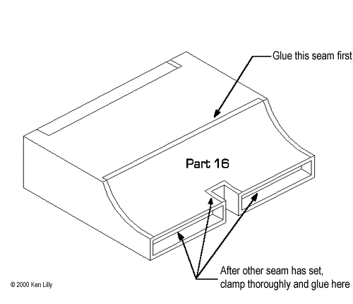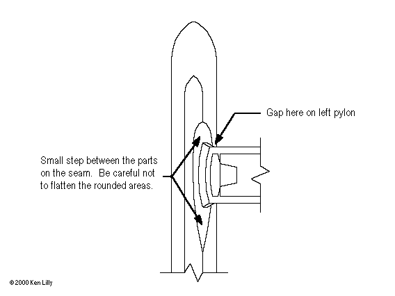 Step 1 (Primary Hull Assembly): Before you assemble parts 1 & 2, make sure to dry fit them first, on my kit, part #2 was a bit larger than the opening for it in part #1, this caused it to "rock" from side to side: if it fit in one side, it wouldn't in the other. A little filing fixed it, but don't file too much like I did, then you have a gap to fill later. After the hull has dried thoroughly, it's time to add part #16. This part is probably the trickiest assembly in the entire model. There are NO pins, lips, or tabs to keep it in place, the only thing holding it is the edge of the saucer, which is about 1/32" thick. The way I did it was to align the bottom of part #16 with the bottom of the hull and glue that joint only, and then let it dry overnight. Then clamp it down to the top hull and glue it completely, letting it dry overnight again. Most of the seam cleanup on this part is at the impulse engine area. Filler will be necessary, as well as some careful sanding and filing. The only other major joint is the seam around the saucer, which except for gaps I accidentally created, was rather easy to clean up. I sanded off the few lines around the bottom between the ring and the edge of the dish and re-scribed them. Since I had the scribing tool out, I went and scribed around the thruster pads to separate them from the dish. A scribed line makes it easier to hand paint without the paint going up the sides. Step 2 (Bow Assembly): I don't know why they call it the bow, it seems everybody else calls it the neck. Anyway, there is A LOT of play in these 3 parts, and it's nearly impossible to hold them all in the proper position to glue, so you'll have to do it in stages. First, glue parts #3 & #4 together, then let the glue dry for a few minutes until the glue has set enough but still has some play in it, then glue in part #21. A trick I used to get the parts in proper alignment is wait until the glue has set a little bit, then clamp the parts into the opening on part #6, using it as a jig. After the glue dried overnight, I reinforced the inside of the seams with super glue, since a lot of stress is on this joint. After everything had set, a fair amount of work is needed to clean up the 3 joints, especially between the back panel and the side pieces. I used a combination of a triangular file and a razor saw blade to get in between the ribs at the joints, I then gave the joints a light coat of liquid cement to smooth out any file marks and round off any sharp corners. Step 3 (Warp Engine Pylon): My sample had quite a bit of warpage in parts 11 & 12, but careful gluing and clamping fixed the problem. However, these 2 pieces had the most fit problems of any part in the kit. There is a very noticeable step at the seam between parts 11 & 12 at all 4 corners, this is due to part 11 being a bit smaller than part 12. The only fix is to carefully fill the joint and carefully sand it to the correct contour. The ribbed piece at the bottom of the pylon was glued together and cleaned up using the same technique I used for the neck assembly in step 2. Step 4: No assembly now, wait until after finish painting. However, there was an ejector pin mark in the deflector housing that had to filled and sanded. Step 5: When you glue the bottom of the warp engines to the pylon assembly, make sure they are level and plumb before the glue dries. The seam between the bottom of the engine and the pylon on the teardrop-shaped area is fairly easy to fill and sand, but on my kit there was a gap on the inside between the left (viewed from the front) pylon and the engine at least 1/32" wide, that was not on the other side. I glued a piece of sheet styrene in it and then cut and sanded it to shape. Go ahead and glue the radiators together, but the ones in my kit had a slight warp towards the center that wanted to pull the joints apart. The joint area is very small, so after the glue has tacked up, tape the joints together and let it dry overnight. Both sets of parts 14 & 15 had bad ejector pin marks and mold defects on the inside that would have showed up after painting that I had to fill and sand.Save the rest of the assembly for this step until after final painting. |