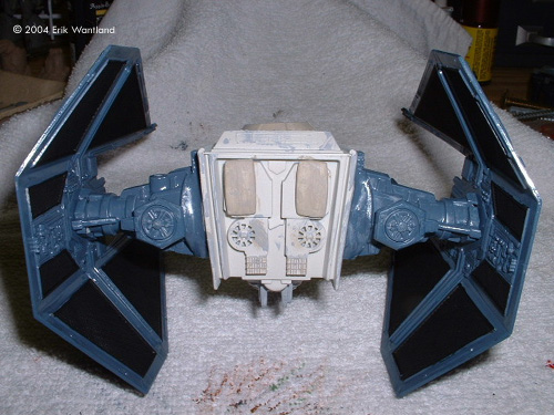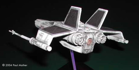 Grey Death by Scott Murphy This Ugly was designated "Grey Death" by the Imperials that survived an encounter with her. It was owned and built by a former A-wing pilot named Darienne Swann who resigned her commision some time after the battle of Endor. Swann was a survivor of Alderaan and joined the rebellion out of a need for vengence. An expert pilot already she became one of the first A-wing pilots and the blistering fast craft suited her style to a 'T'. After Endor she became disillusioned by the shift in focus the Rebellion went through, no longer attacking Imperial forces and embarking on good will tours to sway more systems to their cause. Her need for vengence led her resign and fight Imperials her way. She built this vessel for speed and firepower, scavaging parts from junk dealers across the galaxy. With an Interceptor's solar panels providing power to its 4 blasters and power to a shield generator, Swann was able to install a dedicated reactor to power the engines. This made for the speeds she was accustomed to flying an A-wing. It also boasted 2 ion blasters and an extra concussion missle launcher. However the ship was terribly difficult to manuver. All-in-all a deadly package as Imperial convoys were soon to find out as Swann fought her battle her way. Attacking convoys and outposts with hit-and-fade tactics, Grey Death was a concern for Imperial loyalists for years. About the time of Grand Admiral Thrawn's bid for power, reports of Grey Death ceased. Was she destroyed or did Swann give up her need for vengeance and retire? That remains a mystery. An old ERTL snap kit and the foils fron an Action Fleet inteceptor provide the parts as they are both approximatly in 1/60 scale. |