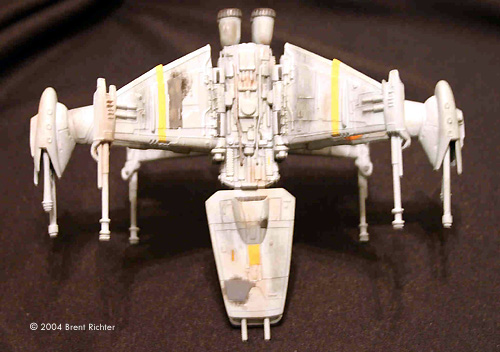 Starfighter by Brent Richter Chief Engineer's Report To: Admiral Ackbar From: Chief Starfighter Engineer, Pinnacle Base Purpose: Initial Evaluation of starfighter developed at Opfeb III Base (high level, semi-formal report) Overview: A new type of starfighter ( if one can really classify it as such) was recently delivered here to Pinnacle Base from the base on Opfeb III, where it was designed and constructed. An engineering evaluation/assessment of this fighter was ordered by your office. The engineering evaluation/assessment is underway and a detailed, formal report will be delivered to your office shortly after completion. It is my understanding this report will aid in the deciding if full production of this type of fighter will be made (rumor has it that twenty ships would initially be built). Background Information (compiled from various reports that you may have already been briefed on): This starfighter (no formal designation established yet) was designed by one of our fighter pilots (name omitted for security purposes) assigned to the Opfeb III base. The pilot was recovering from injuries sustained in an engagement with Imperial forces. The pilot noticed some battle damaged fighter craft, some awaiting parts for repairs and others damaged beyond repair, that had been set aside by the Engineering/Maintenance personnel at the base. A short time later, the pilot approached the Engineering/Maintenance team with holograms for an 'unusual' starfighter design (most thought it was ridiculous). The design was a unique combination of components from other existing fighter craft - most obvious were Y-wing and B-wing components. Computer modeling and simulation were performed to determine the feasibility of the design. Construction of the fighter began after the computer analysis successfully confirmed the feasibility and practicality of the design. Post construction flight testing was uneventful and performance was better than expected. Once final testing and evaluation were successfully completed, the ship was assigned to combat missions and performed exceptionally well. |