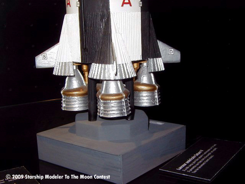 During an international conference in Geneva in 1997 I met Rusty Schweikart who was a member of the US delegation. He kindly accepted to sign my model. In late 1998 The model was exhibited in the Cite de l'Espace space museum in Toulouse, France for the 30th anniversary of the Moon landing. The exhibition was opened by John Young who also kindly accepted to sign it. For about a year the model was exhibited along the N1-L3 soviet Moon launcher which I also built at the same scale.