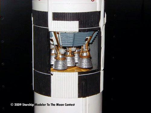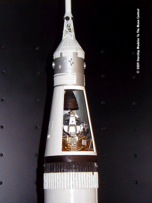 The SATURN V model was built in 1987 using the Heller CSM and LM models as a base kit. The original Heller kit was built several years before and when I measured it I found that the scale was close to 1/90 which is the reason for this scale. Since the Heller CSM kit was a Block I, I had to convert the Service Module into a block II, make the Command Module protective cover and scratch build all the rest (which means all the launcher).