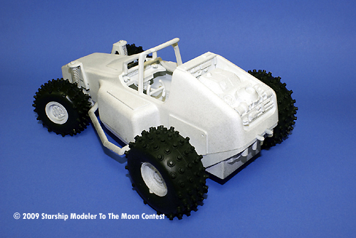 During my years of pack ratting, I'd accumulated quiet a collection of odd objects, from pieces of an old Galactica Raider to discarded RC dune buggies. When the new contest theme was revealed, I knew I wanted to tackled something using something out of the old pile of greebles. I finally settled on an old RC car that I had acquired from an old friend. I would convert it into a futuristic Lunar Bug (I didn't want to call it Dune Buggy as not to confuse it with the classic Space 1999 vehicle).