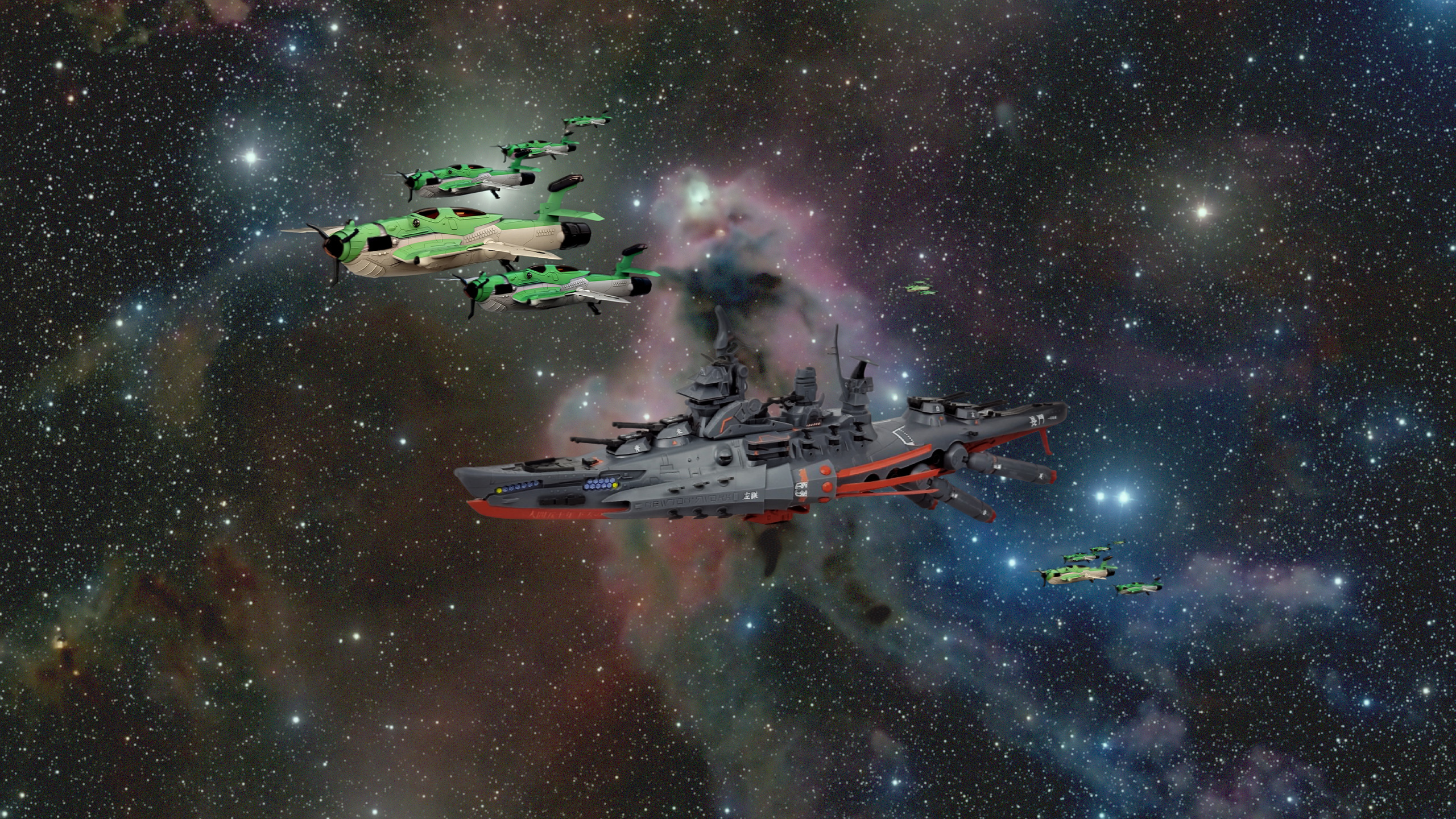 December 2024. Gupellion-class astro-carrier "Schdrg" and CAP, based on Bandai's 1/1000 kit.