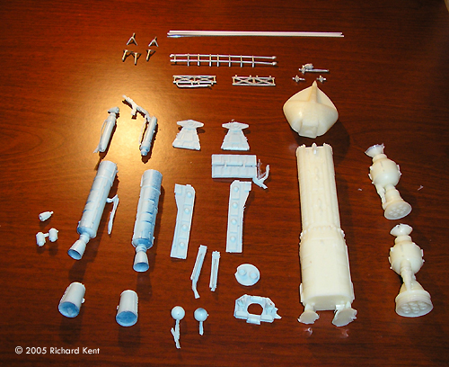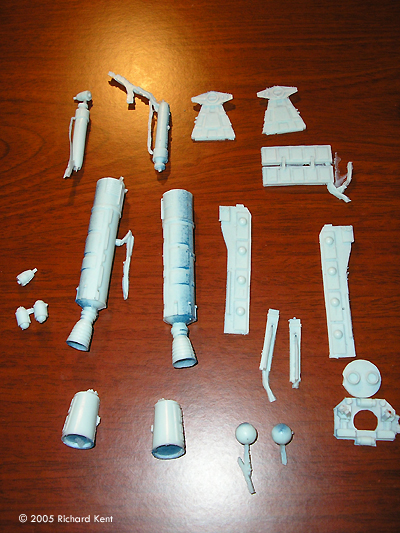 ^ Resin detail pieces Image: White metal pieces Image: Main hull and cockpit pieces Image: Engines |