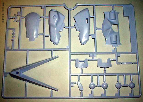 The self-adhesive stickers provided are mainly for a few small markings plus coloring the "tail" of the ship (hence the name Red Tail). I won't be using the stickers since they are inadequate, and will use paint for the markings and the tail instead. Assembly & Finish Bandai has been putting excellent, easy-to-build kits for a while now, and this one is no different. If you can build a Bandai Gundam kit, you can build this ship. With the exception of a few areas where a bit of mobility is needed, I recommend gluing most of the parts together for sturdiness and ease of seam removal/sanding. Inexperienced modelers can build the kit as a snap-fast model too. Based on the box pictures, this kit will need wash and some weathering. Overall, it should be a fairly quick project to do, since there are only 3 colors needed with no complicated patterns. The only problem could be the PVC Faye pilot figure, which may be difficult to paint. Conclusions Of all the ships in Cowboy Bebop, this one is my favorite. You got to love a ship that is versatile, mean and lean, and packs the firepower to back up its reputation. Plus the pilot is a looker. I like the kit and I'm glad I bought it, although it is a shame that this kit had such limited run. My only complain is the overall "hurried kit" impression I get from it, like it was released a bit early before it was ready, which could explain the lame instructions and somewhat bland box artwork. If you like unusual ships and/or like the Cowboy Bebop anime, get this kit. You'll be glad you did. "3, 2, 1, Let's Jam!"Many thanks to Sal's wallet for providing the review sample. Manufacturers and retailers, interested in getting your wares reviewed and publicized on a site averaging 2500+ readers a day? Contact us! |