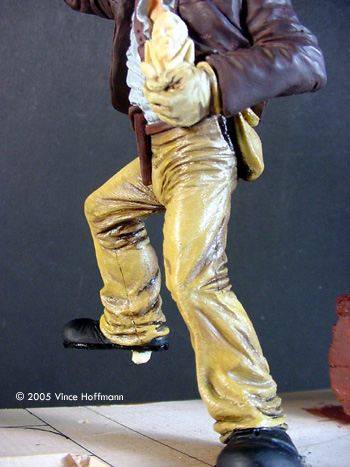 ^ Completed Image: First step in painting: acrylic bases coat Image: Step 2: Adding details Image: Step 3 Image: Step 4 Image: Step 5 Image: Step 6 Image: Closer look at the pants, front ... Image: ... and bhind Image: Step 7: working on the jacket Image: Step 8: Done with the clothes Image: Step 9: Teeth and eyes Image: Palette for face painting Image: Painting the face Image: Painting the base - first steps Image: Finishing the base ^ Closer look at the completed figure Image: Completed figure, right side Image: Behind |