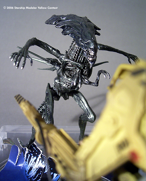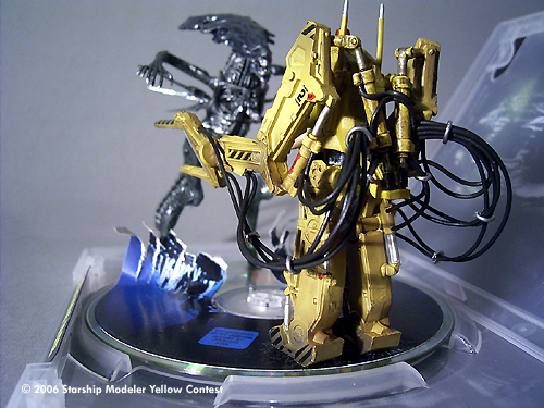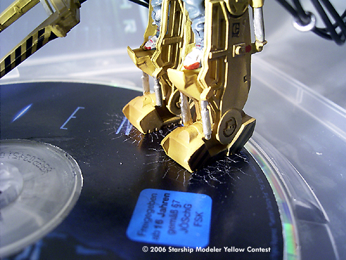The clamps are made out of soldering tin, bent into shape. The figure got an additional wash with dark grey oil color and a drybrush with bright yellow, silver and white. Oh, and of course its overall yellow color is the reason for qualifying it for this contest...