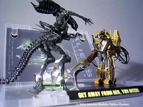 The two figures were glued into place, facing eachother, and finally the sign with Ripley`s famous line was added at the front: "Get away from her, you bitch!"