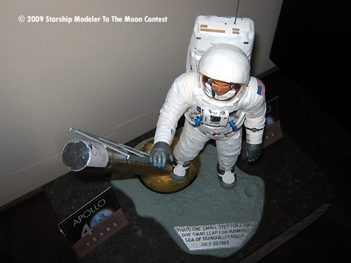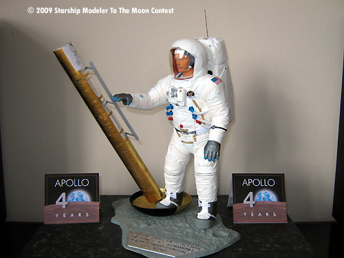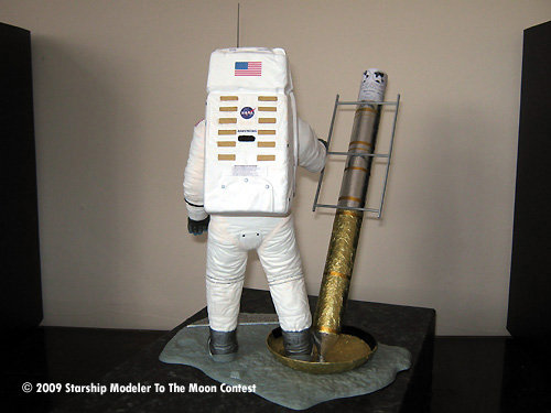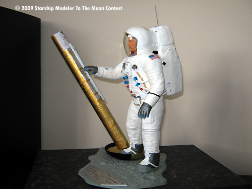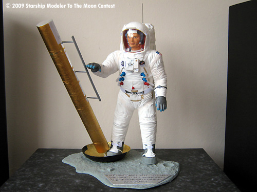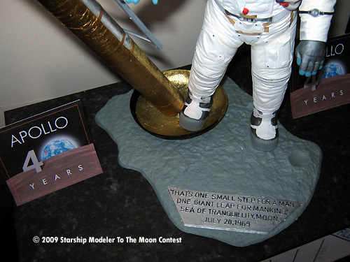 The base was sprayed gray and allowed to dry. Then silver on the famous quote part. The base was finished by using a black technical pen to highlight the words. I close silver and black as they closely resemble the colours used on the plaque on the lunar module leg.