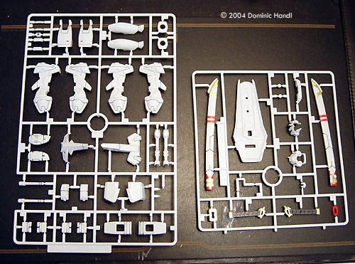 I looked at each piece closely. This kit certainly had a lot of detail to it. It really blew my mind. It presented me with a challenge. At that point, I was already thinking about how to make the model, what parts to use and what not to. I excluded the beam rifle and the shield. I felt they would not match with this model. Those are now spare parts for other projects. A pretty neat feature was the Astray's sword. First time I saw a Gundam use a katana. The blade of the katana was a chrome plated piece of plastic. This is really cool. And it comes with its own scabbard. That's even cooler. Bandai really had a good idea coming up with something like this. Painting Even if the model is molded in color, painting it will enhance its appearance. I favor painting the parts while they are on the sprue. To make things easy, I just decided to go for the white pieces first. I used a Gundam Marker to put two to three thin coats of paint on each part; the tip of the marker does a good job of spreading the paint evenly. I did the same with the red pieces. After the white pieces were dry, I took the sprue that had pieces for the katana. I painted the scabbard with some gold on some parts and red on some parts of it. The hilt I painted gold completely. The handle was a dark grey color in the middle and gold on both ends. It was starting to look good. The eyes were done in the usual manner: painted black on the recessed areas and green on the eyes themselves. For this Gundam it was a bit tricky with the small space, so caution was needed.A Touch of Realism I was never the type to see a Gundam look so shiny and new. For me it has to look like its been in some amount of action to at least look a bit real. I took the red pieces and I tried something new. I had a set of Real Touch markers, which are sort of detail ink for dry brushing. Using a q-tip (cotton bud), I dabbed some of the red Real Touch ink on the corners of the pieces and spread it around evenly. Each piece was covered evenly. I did the same with the grey pieces. It was really starting to look good. For further detail, I went over the panel lines of some of the pieces with my micron pen. Assembly As shown in the instructions, I started with the upper body. There were two large pieces to this assembly and three poly-caps. Two for the shoulder joints, one of which joins the main body to the lower body. The lower body is two large pieces and has a ball joint that connects to the poly-cap socket on the upper body. This part has a poly-cap for the pelvis joint. Its not like any Gundam model I've made in the past. The main body comes multi-jointed. That was all detailed before I put the outer covering on. It was 3 pieces: a big piece that goes on the chest, and two small ones that attach to the back, just below the shoulders. The head was next. I don't even know why Bandai set up the instructions in this manner. The head consists of seven pieces plus a poly-cap that connects to a ball joint on the neck. First I had to put the whole face together. It was three pieces: the eyes, the chin area, and the face guard. This part then goes into the two large pieces of the head. Then the back piece went on with the “V' on the head last. As an option, since the V was a whole piece, I could either have it on or have it with out the V as a Hexa-type. I chose to put the V on. Maybe on another Gundam of this type, I will make a it with a Hexa-type head. It has a very sleek look to it. The arms I had to do in stages. First the biceps had to be done. This part had two poly-caps, one for the elbow joint and one which connects to the shoulder. The upper arms were large pieces. Two poly-caps go in to this part with one extra for add on parts and one for the wrist joints. The wrists I did separately and joined later. This has a poly-cap which connects to a ball joint on the hands. After all that was done, I put the outer covering on the arms, and did the shoulders. These had a joint which connects to the arms and another which connects to the main body. The shoulder armor has grilles. I thought that was pretty cool. The hands were two pieces so they were straight forward to assemble. I used only three of them. The one for the rifle I didn't use. |