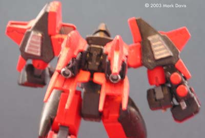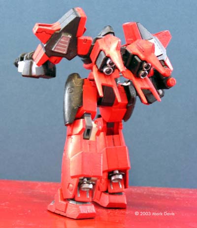 The instructions are fantastic and completely blew me away compared to anything I'd seen before. The Japanese set is ten pages with the actual diagrammatic instructions on one side and loads of pictures of a finished model and shots/story line/characters from the anime it appeared in on the other side. Such a wealth of information would have proved far more useful if I could actually read Japanese Kanji (Ho Hum). The English instructions are not so exciting as they are just the instructions with what little text there is on them translated, they don't have any of the additional information translated, which is a shame but not a major obstacle. Assembly Having inspected all of the parts, I laid them out on my desk and fished out my cutters. I started with the English instructions, but it soon became apparent to me that the Japanese ones weren't exactly hard to interpret with a bit of common sense, and were more interesting to boot. Construction starts with the legs, followed by the arms, and then the body/backpack, finishing up with weapons and accessories. The process took me longer than it might take most people as I kept double-checking the instructions - it seemed too easy and I became convinced I had made a mistake somewhere. Not to mention that every time I finished a section I sat and played with it, marvelling at how well and smoothly it all worked and how precise all the fits were. A contradiction here: the majority of the kit parts' fit is so good you can't get them apart again. There is one flaw and that lies in the upper torso, where the two halves don't fit together flush, leaving a gap at the base. I fixed this by prising this section apart, cutting the pegs off one side of the lower torso and gluing the whole thing back together again. Once I had finished building the robot I put the quite cheap but at the time satisfactory stickers on for the eye, red vents on the shoulders and the grey bands around the middle of the forearms. Finally I put together the guns deciding to glue them together for some extra strength. Painting Even with the rubber joints and moving parts putting this kit together proved to be far easier than I had imagined. By carefully following the incredibly easy-to-understand instructions I soon a model robot standing on my desk. I would have left it there were it not for the fact that it was such boring colours. I decided to take it all apart again, remove the stickers and repaint the whole thing in more “interesting” colours. Or that was the plan. Actually getting the whole thing apart proved to be nigh on impossible. So I instead settled on stripping it down to it's subassemblies and then painting straight over the plastic as priming it would have jammed up the polycaps. I had just received the first volume of Hellsing on DVD a few days prior to buying this kit and I was inspired by the main characters distinctly vampiric style. So armed only with a brush, a jam jar of water and some reasonably recent Games Workshop Acrylics, I repainted the pieces starting from the bottom and working my way up. I may not have know much about Gundam at the time, but one thing I did know is that most of them have red feet (or booties as my Mum keeps calling them). I started from there, alternating between the classic vampire colours of red and black, with details such as the shoulder vents and the barrels on the twin Vulcan in sliver. To finish, I painted the hands white to reflect the white gloves that nearly every character in Hellsing wears. I considered painting Alucard's pagan symbols on the sides but decided it was beyond my current skills range. I decided that I didn't like the design of the beam cannon and so didn't bother painting it. The single Vulcan in his other hand came from the vast box of weapons and other assorted junk that I have from my time scratching Ork vehicles for Warhammer 40,000. It just happened to fit his hand, so he's held on to it.Thus was Gundam Alucard born. I later tried doing some panel lines with a black fine tip Bandai Gundam marker that I got with the first Gundam I ordered from HLJ. As Ringo Star used to say “But that's another story for another time”. With this only being a 1/144 there isn't a lot of posability in the model, but what is there moves very nicely. One other thing that should be mentioned is that the twin Vulcan is so heavy that the Serpent can't actually hold it horizontal on it's own. As you can see from the photos the gun needs to be tucked just under the shoulder guard to keep it steady. Conclusion In closing, I'd like to say that every thing about this kit was just simple unadulterated fun. I had great fun buying it, building it, and repainting it in my own slightly unhinged paint scheme. I loved making this kit, as it was quick and simple. Had I not paid nearly four times what it was worth I would have brought loads more from that shop. Come to think of it that Deathscythe is still there....... |