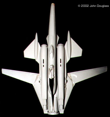 Image: Overhead view, weapon extended Image: Wings extended (top view) Image: Unpainted model, overhead view (wings closed) |