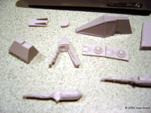 The next surprising thing was that the kits were really not that accurate. They feature a solid canopy, and raised panel lines amongst other problems. Well, I was determined now to find an affordable kit that I could overcome those problems with. A quick search of the Starship Modeler site revealed to me the MMI detail kits, that I would need to get...now my model was up over $100...and the MMI kits are not readily available right now. Just when I was getting discouraged I stumbled on Scifi Models.com. I had not done any business with them previously, but the $40 price point was too good to pass up...so I snagged one up...and I could not be happier! What You Get The kit consists of 15 resin pieces, a vacuum formed canopy and instructions. The main body is three pieces, and all panel lines have been etched in cleanly. The pieces fit together fairly well right from the box, and only minimal flash was present. There is only one tiny imperfection I can find, a slight indention on the right side of the nose, but it will be easy to putty and sand. The first thing I noticed about the kit was the sharpness. The viper is covered in cables, wires, and other tiny details...and they are brilliantly clear on this kit. Often times with resin kits some of these details are "smoothed" out...this is not the case on this kit. In fact, it looks as share as the most recent Hasegawa kits I have purchased, very impressive. The cockpit comes pre-opened, with a seat, and control console details. I am told that the MMI pilots will fit inside, so I am still on the lookout for one of them! I do wish there was more cockpit detail, but it is such a small space there is not really a whole lot more that could be seen and it certainly far exceeds the solid cockpit of the plastic model. |