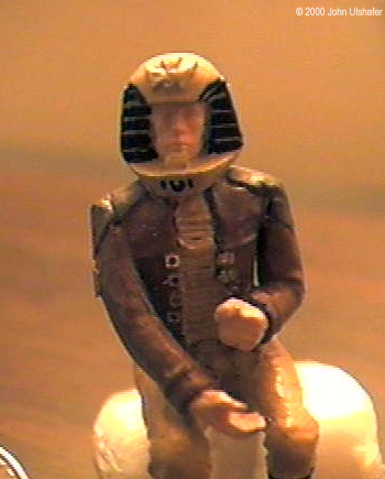 I mesmerized by Apollo, Starbuck and the other Colonial warriors doing battle with the evil, albeit cool-looking, Cylons. It didn't matter that there were the same nine Special Effects shots replayed every week, Colonial Vipers were just COOOL! And when Monogram reissued the Viper in the mid-nineties, I snatched one up and did a what I thought was a bang up job..... until I saw the detail set by Millennia Models Inc. I thought wow! That is too cool! I obtained my cockpit set and pilot from John Green's who at the time had not only the cockpit set but male AND female Colonial Warrior kits. I decided on the male pilot and ripped open the boxes as soon as I got in the car. The Cockpit Set My kit was free of any warping, bubbles, or any significant defect. Only some minor flash was present. Very little work was involved in assembling the cockpit itself, just some minor sanding to attach the head piece or canopy base located behind the pilot's head. Most of the work involved with the cockpit itself revolves around painting the various instruments and panels. The instrument panels themselves are photo-etched brass and come on a single fret. They are individually numbered on a separate reference sheet. I had never used photo-etched brass before, but the instructions made it very easy. The instructions even offer an easy but effective technique to paint the individual panels by sticking them to a piece of tape that has been secured to your work surface. The canopy itself is a single piece of vacuformed plastic. You are given the option of an open or closed canopy. By the way, I just have to stop and give a little thank you to the guys at MMI, the canopy I had in my kit had a tear in the plastic. I wrote to MMI and asked if replacements were available, they e-mailed me back shortly thereafter to inform me that a replacement was already on it's way to me! THAT'S CUSTOMER SERVICE! Thanks Guys! The single piece of clear vacuformed plastic and is very detailed indeed. You can actually see the rivet work on it! Trimming it off the rest of the plastic is tricky and requires patience and a steady hand. I would recommend small scissors (manicure scissors or the like) for this task, as scissors make straighter cleaner cuts. It's a little slower but worth it. Once cut out, all you have to do is mask it off with Scotch magic tape, paint it, peel off the tape, dip it in Future floor wax and that's it - canopy done! Next came the hard part. To actually fit the cockpit inside the viper fuselage, a little surgery is required. But this too is made simple thanks to the instructions. They provide a 1:1 template that lets you know how much and where to cut on the fuselage. The only real time consuming part of this whole kit was the puttying and sanding to smooth out the fuselage once the cockpit is installed. I was a little disappointed with how much you can actually see once everything is installed (even less once the pilot is installed!) but what you can see is worth it. Besides, as those of you who have built interiors for your ships before know, you know it's in there. Even if you have to squint to see it! Bottom line.... Great kit. Seated Male Colonial WarriorThe second kit: the seated male colonial Viper pilot, also from MMI. The kit is made up of 15 parts consisting of a seated body and torso, two sets of arms, two holstered laser pistols, a small fret of photoetched brass which contains the buckles and uniform insignia, a small imitation leather strip with adhesive backing, and three heads - one helmeted and two bare headed. These last are presumably Starbuck and Apollo, and are pretty good likenesses at that. I chose the helmeted head as my canopy would be closed. I'm sure it would be possible to dremel out the helmet and set it beside a bare headed pilot with the canopy open. The detail on the Photo-etched parts is remarkable, from the insignia patch to the teeny-weeny buckles that go on the Warrior's jacket, to the boot buckles. There are even two tiny brass pieces that make the ear phones on the Colonial helmets. As previously mentioned, the kit comes with two sets of arms and two holstered laser pistols, which gives you the option of a right or left handed pilot (Apollo was left handed). The instruction sheet is pretty straight forward and includes detailed painting instructions, right down to the stripes on the sides and back of the pilot's helmet. As with the cockpit kit the detailing on the Colonial Warrior is outstanding, making this kit an exercise in patience and painting. But in the end it's well worth it, as the result is a very detailed replica of a Colonial pilot which adds the perfect finishing touch to your tricked-out Viper. |