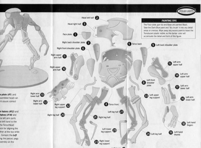 It was a cool idea to mold the kit in clear blue, but for me, it doesn't work. That's OK though, because I have a good idea how to make the critter look better using some not-so-advanced painting techniques and my trusty airbrush. First, I'll build him up in subassemblies, paying strict attention to removing all trace of seams. Before gluing the assemblies together, I'll polish the kit with jeweler's paste (available in big, cheap tubes at most supermarkets in the US). After making sure there's no residue left, I'll spray the entire model with a very light matte grey. Then I'll come back over it in random stripes and swirls with the brightest gloss white I can find. Then, a metallic blue enamel, lightly - probably something like Testor's "Steel Blue", which doesn't cover very well and needs lots of coats to make it opaque .... not that I want it to be opaque, mind you. Once that's dry, I'll build up layers of clear blue (either Gunze or Tamiya acrylics, or maybe alternating patterns of both) until I get the look I want. Between every coat, I'll spray the entire model with a clear coat - there's no better way to give an illusion of depth to something like this. Yes, it sounds like a lot of work, but there's no masking involved, just painting. All one needs to make this work is patience, an airbrush, and a couple of jars of paint. It could well be a great way to learn to airbrush, or get more proficient at it. ConclusionsPolar Light's Drej Alien is reasonably sized, reasonably priced, and probably easy enough to build most folks can do it over the course of a weekend. It'll take some effort to make the kit look like it's not just plastic bits glued together .... but that could be said for any model. Bottom line - I like it. Many thanks to my wallet for providing the review sample. Manufacturers and retailers, interested in getting your wares reviewed and publicized on a site averaging 2000+ readers a day? Contact us! |