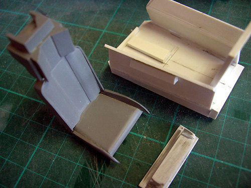 ^ Getting started: styrene and foam blanks Image: Joining the vacuformed fuselage halves Image: Adding the raised nose detail Image: Main engines joined Image: Recess for exposed engine detail Image: Rear fuselage detail affixed Image: Upper fuselage closed .... Image: ... and the lower ^ Starting the bottom extension Image: Blending it together with putty Image: lots of sanding ... Image: Landing gear pods Image: Pods in place Image: Main engine components ^ Engine details Image: Outer details in place Image: Inner detail ^ Upper engine components Image: Base for the top engine & tail Image: Ready for the engine Image: Image: Components assembled ^ Engine detail inside the top cover Image: Side detail being affixed Image: Done ^ Tail fin Image: Recessed engine detail parts ^ Adding detail to the engine recesses Image: Detail for the nose insets Image: Primed ^ Cockpit components Image: Cockpit tub Image: Rear bulkhead Image: KEW Image: Bottom/rear thruster outlets Image: Main wing parts Image: Wing to fuselage Image: Canopy construction Image: Wire details for the engine recesses ^ Completed cockpit tub Image: Components, painted and detailed Image: All together Image: Primer applied Image: Base color coats ^ Striping Image: Cockpit in place Image: Tamiya Weathering Set B - good stuff ^ Decals and weathering completed |
