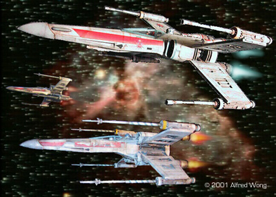 By Alfred Wong - images & text © 2001 Those who are familiar with the vast and richly detailed Star Wars universe outside the movies will know that the X-Wing starfighter, the ship most identified with the saga, is not exactly a state-of-art starfighter. It was already approaching obsolesence at the Battle of Endor, and most other fighters in the Star Wars universe can out-perform it with ease. Despite this, the X-Wing remains popular with its pilot and remains the dominant fighter of the New Republic.
