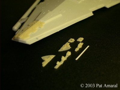 Odyssey Slipways' Secondary Engines Kit is most accurately used on the Avenger although they could be made to portray Devastator's secondary engines after some modification. In my opinion, the parts in Ertl's kit have a more accurate basic shape for the Devastator but they do not have as much surface detail as the Odyssey Slipways kit. Perhaps Chris (owner of Odyssey Slipways) will decide to release a version of these parts specifically for the Devastator at a later date.