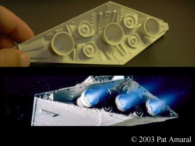 There are basically two classes of Star Destroyers that the Ertl kit can represent. Without getting into too much detail, the ship we saw in A New Hope was known as Devastator and was one of the Imperial Class of Star Destroyers (some folks prefer to call it Imperator Class). In The Empire Strikes Back, we were introduced to a different ship, the Avenger, which belonged to what is sometimes referred to as Imperial II class.