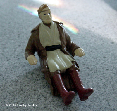 Conclusions All of you “true modelers” will need to fill the seams and repaint it, but all in all, a nice kit. It took me about two hours to assemble, but I was interrupted 27 times with requests for more juice, Elmo TV, and help with making Play-Dough snakes. You could probably get it assembled and ready to fly around the room while you do your best Darth Vader impersonation in about half an hour. I have no idea how long it would take to fill the seams and repaint it, but based on John’s limited time to work on models: six months on the workbench, with maybe eight hours of actual modeling time. I had been reading a few of the threads in the forum about building this kit and I wondered “why are they talking about decals and paint when it’s a pre-painted kit?” And while the paint scheme on the kit looks great, it really needs to be cleaned up and weathered. But the kit itself is a great kit to work with and you won’t be disappointed. Now that I’ve completed my Jedi training, it all becomes clear to me. And may the force be with you. (Sorry, but somebody had to say it.) Editor's Note: A word about costs - Revell Germany's license with LucasFilm does not allow them to sell these kits directly outside of Europe. International shipping being what it is, the cost of the kits can be double (or more) what folks in the EU will pay (for instance, Cosi reports he paid £8 (GBP) or about $14 USD/$17 CAN/$18.50 AUD) for his model). And that's on top of the markup a distributor will charge. Be smart - don't pay for more shipping than you have to! |