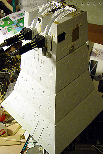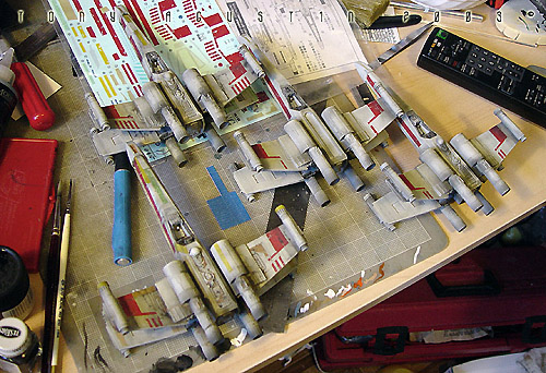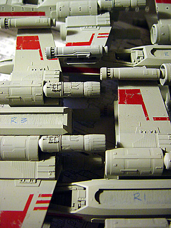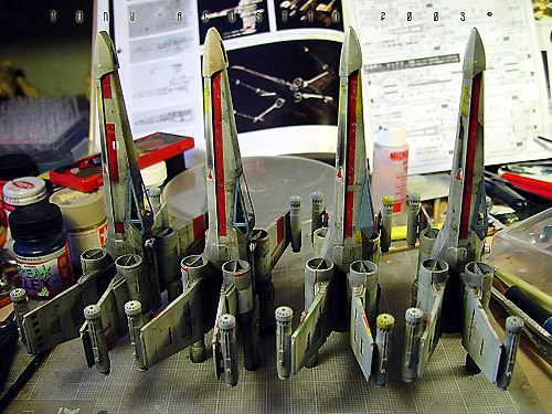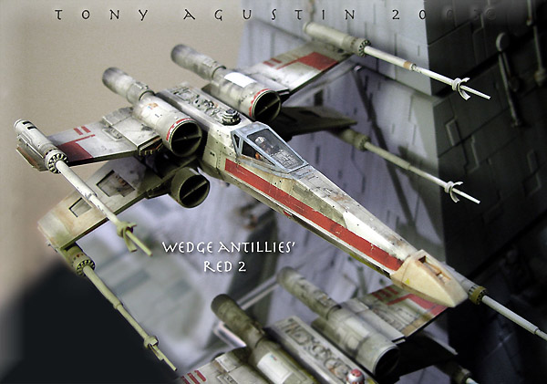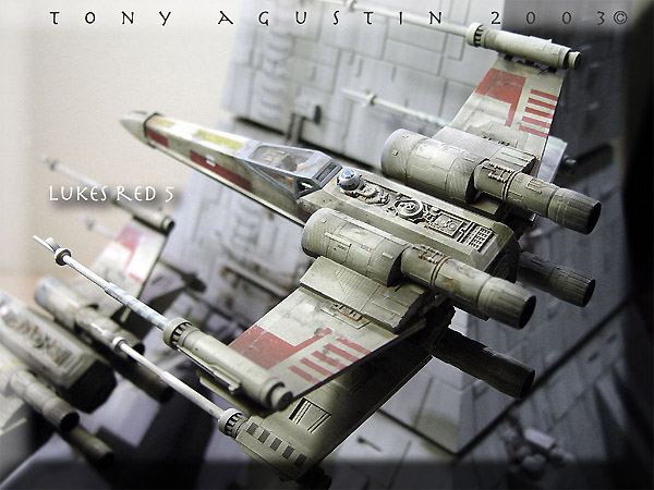 This diorama came about due to the fact I had bought four Fine molds X-wings but I didn't want to just stick them on a stand like I did to my other four ERTL X-Wings. This was going to be my first serious scratch build and I wanted it to look good. I prepared myself by digging into old Star Wars magazines and doing internet searches looking for Laser Tower references. I knew I couldn't duplicate the details from the actual filming miniature, so what I did was make it up as I went. I tried to capture the essence of the original. Besides I think it's more fun that way to invent your own details. |
