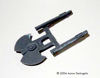 What You Get Upon opening the bag, I was greeted by three resin pieces molded in Smooth-on SmoothCast 305 with SoStrong Blue colorant added for sexiness (I think I got that right!) The largest of these pieces is the combined saucer and catamaran hull. The deflector's trench is slightly misaligned, as is the torpedo launcher on the underside. Both are only off by 5º or so, it really isn't noticable unless you put your face in the model (like I did.) The other two pieces are the nacelles, hollowed out in the front to accept another two pieces, the bussard collectors, which are molded in clear red. The clear bussards look really nice on the finished model, but I think it would look more "TOS-ish" with a bit of yellow thrown into the mix. Instructions Visual aids for assembly aren't included, nor needed (I think we all know where to put the nacelles.) Some assembly tips were in the instructions, which included advice on building and painting the kit. The decal placement guide shows where to put your decals (I bet you never would have guessed that that was what it was for.) It is very accurate, as there is no source to prove them wrong. Clean up There wasn't much to clean up. Two pour stubs (on the saucer) and a bubble (on the port nacelle pylon) were the extent of my journey into the wonders of filling and sanding on that piece. The molds for the nacelles look like they were slightly mis-aligned, so a little sanding was required there. (Editor's Note: the mold for the nacelles was changed so it's one piece now. It eliminates the possibility of any annoying seam down the length of the piece, but it means you have to drill out the front of the nacelle so the collector can be attached.) Removing the bussard collectors from their stubs was difficult. I held them between my index finger and thumb and dragged them along a small saw. It didn't take to long before I had worn it down to a point where I could split apart the stub and ball with my trusty X-acto. Assembly The bussard collectors fit like gloves into their alcoves in the nacelle. The pylons aren't shaped quite right, and leave a blunt edge where they meet the nacelle. A little putty can fix this right up, or you can leave it as is and claim "it was designed to do that," like I did. I gave it a coat of Krylon® primer and declared this stage of construction complete. Paint I'm a bad man. I didn't follow the instructions' directions to paint the ship light gull grey. Instead, I painted it light ghost grey (very similar, but it differs by a few letters.) Darker areas on the nacelles were painted neutral grey, and lighter areas were painted light gray. The bridge recieved a dot of sand, and the planetary sensor was hit with a splotch of silver. The deflector I painted copper, with a silver rim. Decals I hate decals. I never fail to rip every one when putting it on a model. However, the JTGraphics decals included with the kit greatly enhanced my decaling experience, as five of these awesome decals didn't rip on me. Since I have never heard anyone complain about them being thin, it must be me... The decals are great, simply put. They include options for two ships (Odonata and Shikra) and window options that let you decide if you want your ship powered-up with lights on, or powered down with all the windows black. I went with dark windows because I wanted them to stand out a bit. I was going to name it Odonata, until I slipped with tweezers and crumpled a decal with the name into a little ball smaller than the period that will close this sentence. In the end, I got them all on, and even made them look like I hadn't ripped them at all (don't ask me how; I don't know either!) I gave it a good coat of Krylon® clear coat and called it "done." Last WordI finished this model in a week, and it's the best model I've done! A week is about 52 times faster than normal (52 weeks in a year... ha!) This kit was fun to put together, from pulling it out of the mail box to taking pictures of the completed model. I highly recommend it to anyone looking for a quick, fun build. Manufacturers and retailers, interested in getting your wares reviewed and publicized on a site averaging 3500+ readers a day? Contact us! |