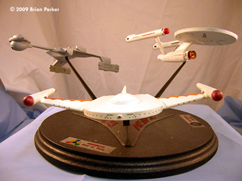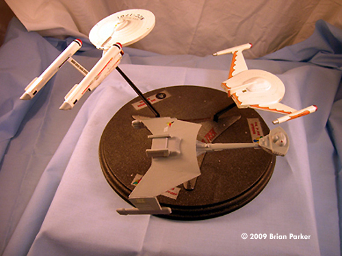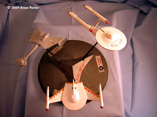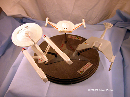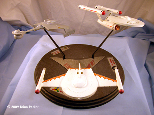 ^ What you get Image: Box Image: RBoP's pylons fixed Image: Progress Image: The worst seam ^ Klingon D7 Image: D7, above/front Image: Above/rear Image: Rear view Image: Underneath Image: Left side Image: Right/rear Image: Right side ^ USS Enterprise Image: Enterprise, left/front view Image: Front/low Image: Underneath Image: Shuttlebay beacon Image: Left/front view Image: Right/rear Image: Right side Image: Saucer Image: From above ^ Romulan Bird of Prey Image: Top view Image: Bottom Image: Front Image: Left side Image: Plasma emitter Image: Right/front Image: Above/rear Image: Left/front Completed Display Image: Front viewImage: Above/rear Image: Above/right Image: Top Image: Stand |