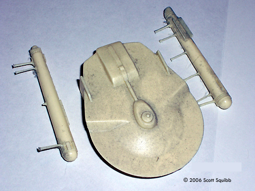 As with every Odyssey Slipways kit, I have yet to be disappointed in the quality of work that goes into each of his models. What You Get You get the primary hull as a separate piece with the pylons already molded to the hull, which is nice since you don't have to worry about messing up the alignment of the pylons/hull/engines. The engines are molding as one piece and are completely new sculpts of the original TOS engines and are nicely done with great attention to the details, especially the “warp grills”. The instructions are very straightforward line drawings showing the placement of the engines to the pylon, pretty simple. There are no decals provided. |