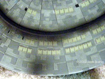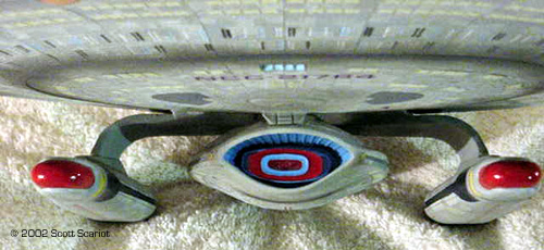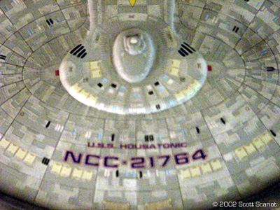 Image: Overhead Image: Underneath ^ Shuttle bayImage: Lifeboat details Image: Deflector dish Image: Upper saucer, showing name ^ PodImage: Dedication plaque |